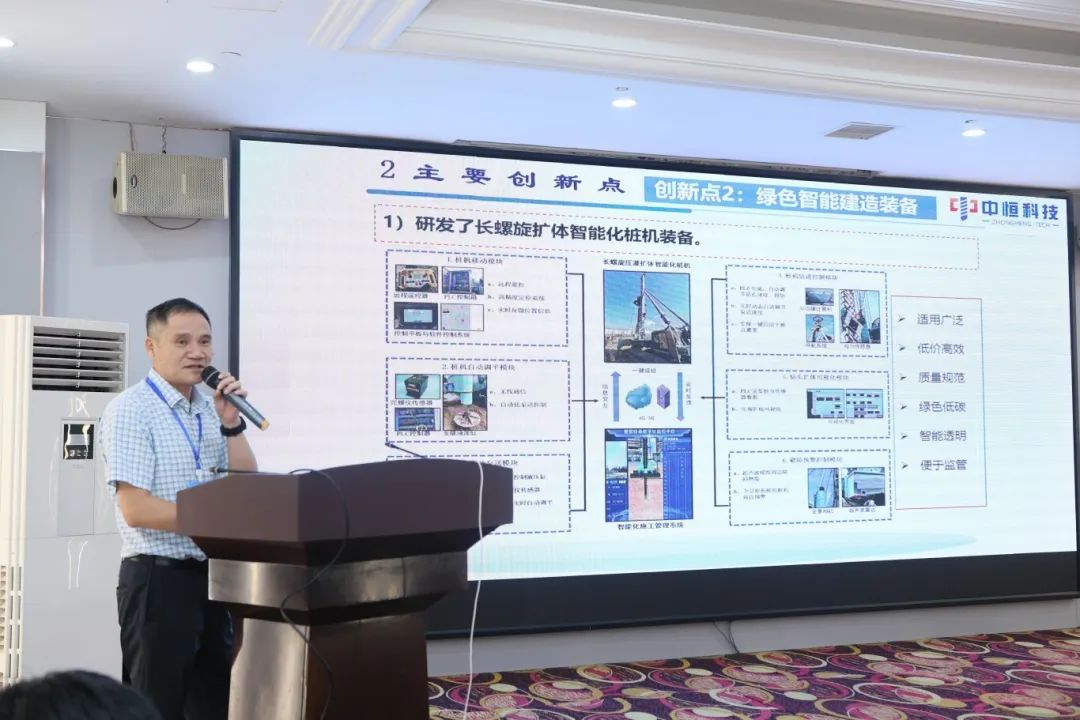 在8月22日举行的岩土工程技术创新应用成果交流会上,中恒科技曹开伟代表公司作专题汇报,详细介绍技术研发历程、核心创新点及工程应用案例,得到上海市基础工程集团有限公司顾问总工程师李耀良、北京市建筑设计研究院有限公司副总工程师孙宏伟等评审专家的高度评价。专家一致认为,该技术在绿色化、智能化、经济性方面优势突出,为我国桩基工程施工提供了可复制、可推广的“中恒方案”,具有广阔的推广应用前景。