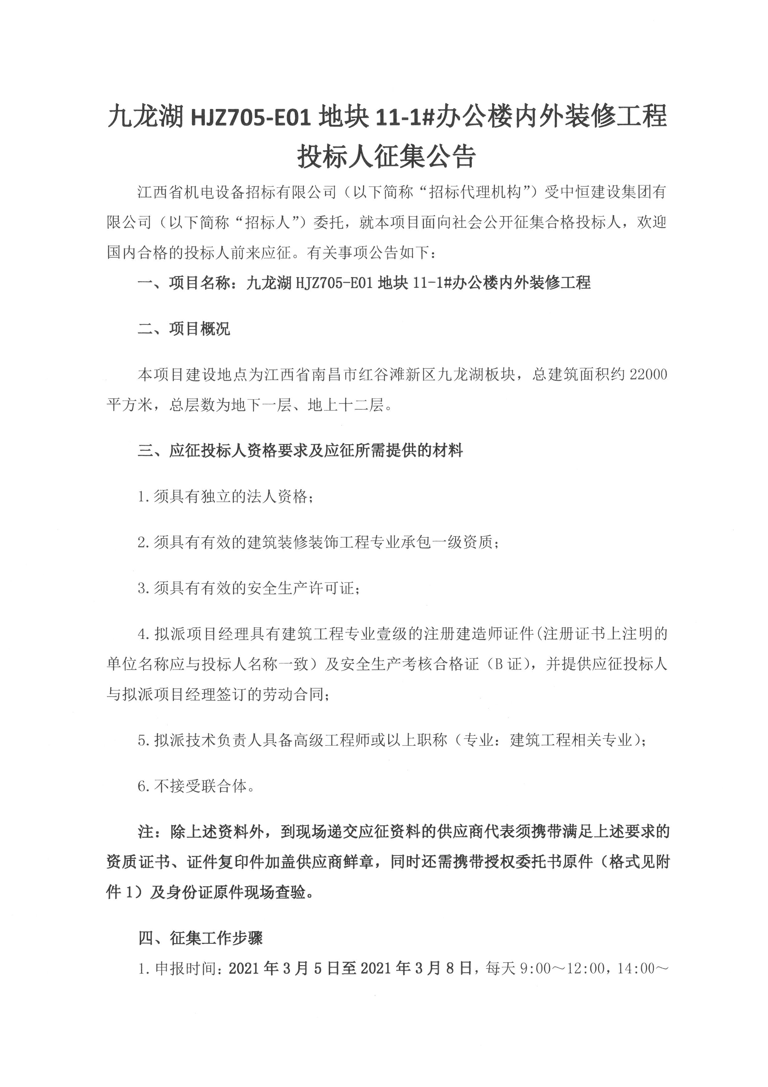 九龙湖HJZ705-E01地块11-1#办公楼内外装修工程投标人征集公告